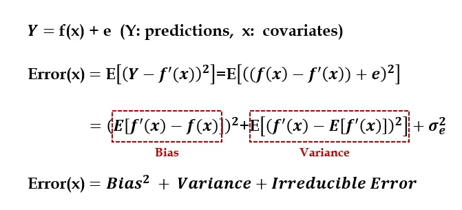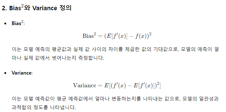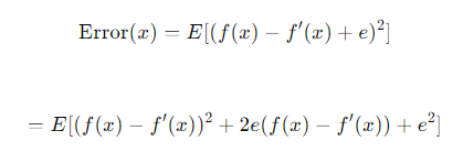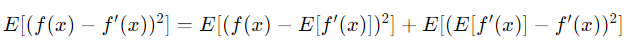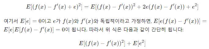 이런 식이 나온다. 우항의 왼쪽 식은 bias의 제곱, 오른쪽 항은 variance임을 볼 수 있다.