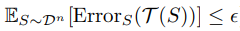 T는 training procedure, epsilon은 threshold, S는 (input, label)의 set. 총 n개의 data가 있음.