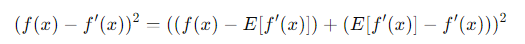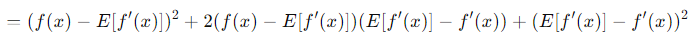 3. 그렇다면 왼쪽 식(E[(f(s) - f’(x))^2]은, 어떻게 bias^2 + variance가 되냐면,
