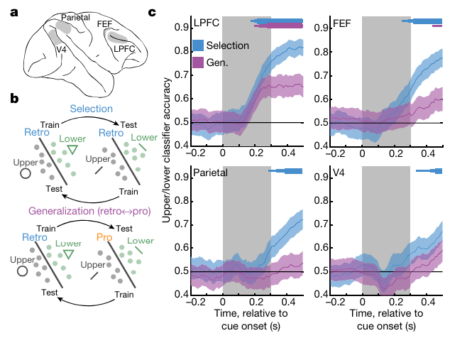classifier 학습은 logitstic regression classifier로, 입력이 population firing rate이고, 출력이 위 또는 아래 다. 결국 예를 들어서, LPFC에서 neuron firing rate이 컸을 때, 출력을 맞췄으면, memory를 쓰는 task에서 LPFC를 더 많이 쓴다는 것.