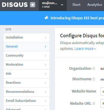 디스커스: https://disqus.com/ 여기서 댓글 기능을 관리하면 된다.