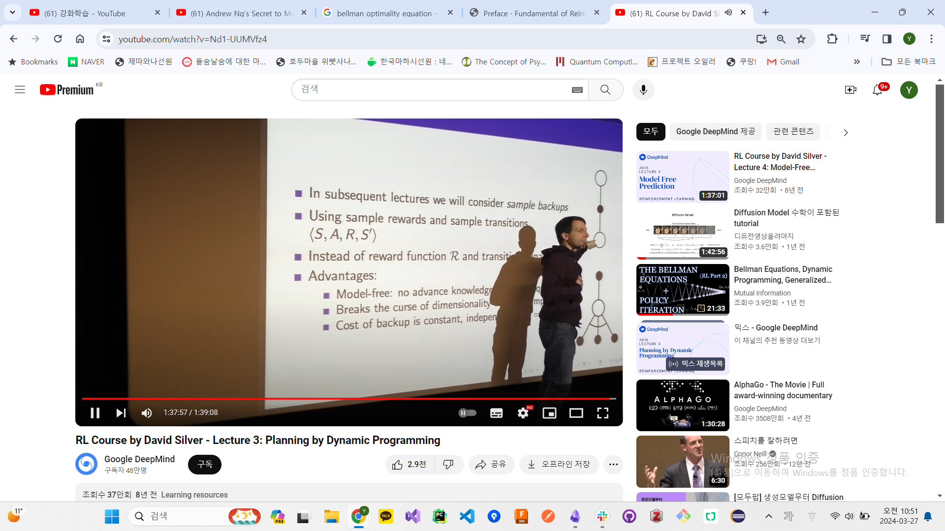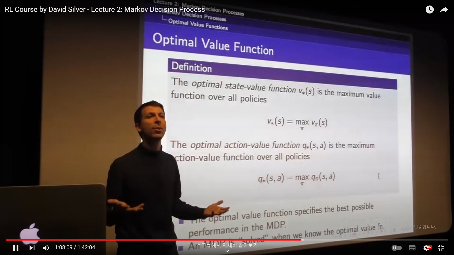 Rl, david silver lec2,3 헷갈리는거 정리, optimal value function