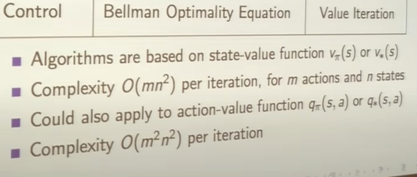 **motivation: ** lecture 2,3. bellman optimality equation이랑 DP의 control iteration에 대해서 알아보자.