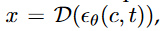 (즉 prompt를 CLIP text encoder에 통과하면 conditioned vector c가 나오고, c와 timestep t를 diffusion model에 넣어준 것을 VQ-VAE의 decoder에 통과시키면 이미지가 나온다는 것.)