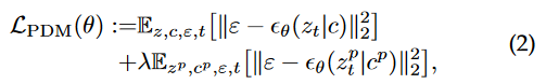 는 이에 대응되는 text condition이고, 람다는 두번째 항의 backpropagation을 control하기 위한 항이다.