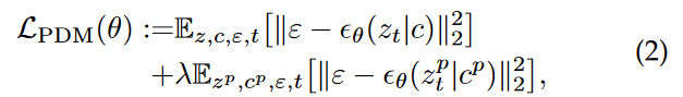 (Dreambooth에서, prior preservation loss로 사용하는 것. 이거는 결국 λ𝜆는 prior-preservation 항의 상대적 가중치를 조절하는 값이다. 저자들은 loss가 단순함에도 불구하고 overfitting과 language-drift 문제를 극복하는 데 효과적이라는 것을 발견했다. 200 이하의 epoch, learning rate 10−510−5, λ=1𝜆=1으로 두는 것이 좋은 결과를 달성하는 데 충분하다고 한다. 학습 과정에서 200×N×𝑁개 이하의 “a [class noun]” 샘플들이 생성되며, N𝑁은 주제 데이터셋의 크기로 일반적으로 3~5이다. 학습 과정은 1개의 TPUv4에서15분이 걸린다.)https://kimjy99.github.io/%EB%85%BC%EB%AC%B8%EB%A6%AC%EB%B7%B0/dreambooth/