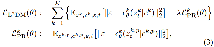 자세히 설명하자면, Eq (4)의 첫번쨰 term은 L2DM을 지도하는 term인데, fine-grained memory bank를 사용한다. 이 memory bank는 learned personalized concepts에 대응되는 generated data다.