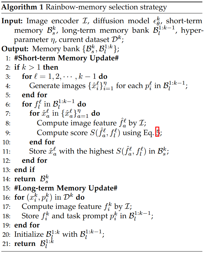 기존의 3번 식과 다른 점은 첫번쨰 항인데, STM에서 온다는 것이 다르다. memory bank에서 오는데, 그러면 어떻게 STM, LTM를 어떻게 store 하는가? 이거는 Rainbow-Memory Bank Strategy 에서 다룬다.