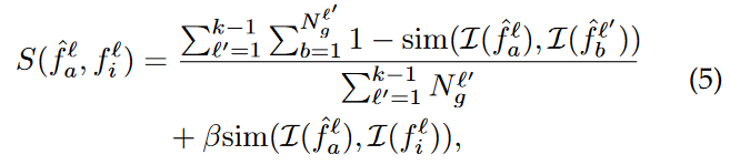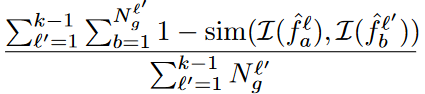 는 각각 l-th task의 a-th generated sample, l’-th task의 b-th generated sample에 해당하는 CLIP feature를 의미한다.